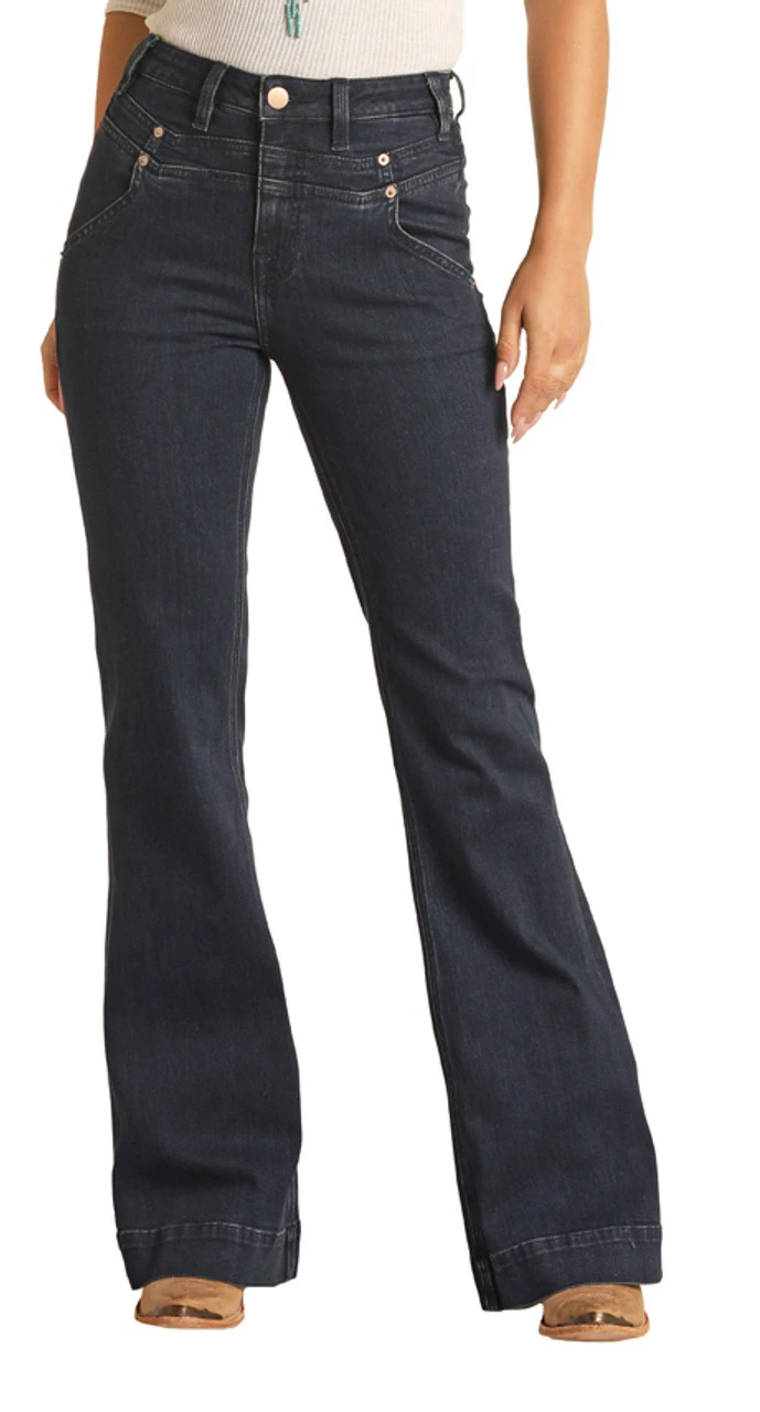 - Detail: Dark Wash High Rise Trousers